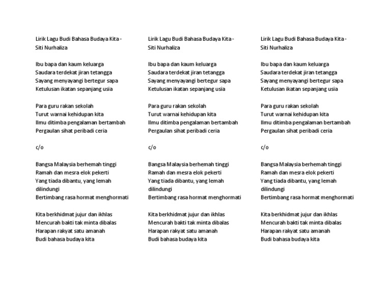 Lirik Lagu Budi Bahasa Budaya Kit1 Pdf